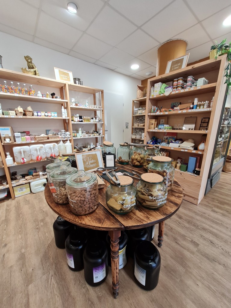 Une grande partie des produits sont disponibles en vrac, y compris les produits non alimentaire (lessive, produits d’entretien, cosmétiques…). Vous pouvez venir directement avec vos contenants et ainsi participer à la réduction des déchets tout en faisant votre plein de courses quotidien.